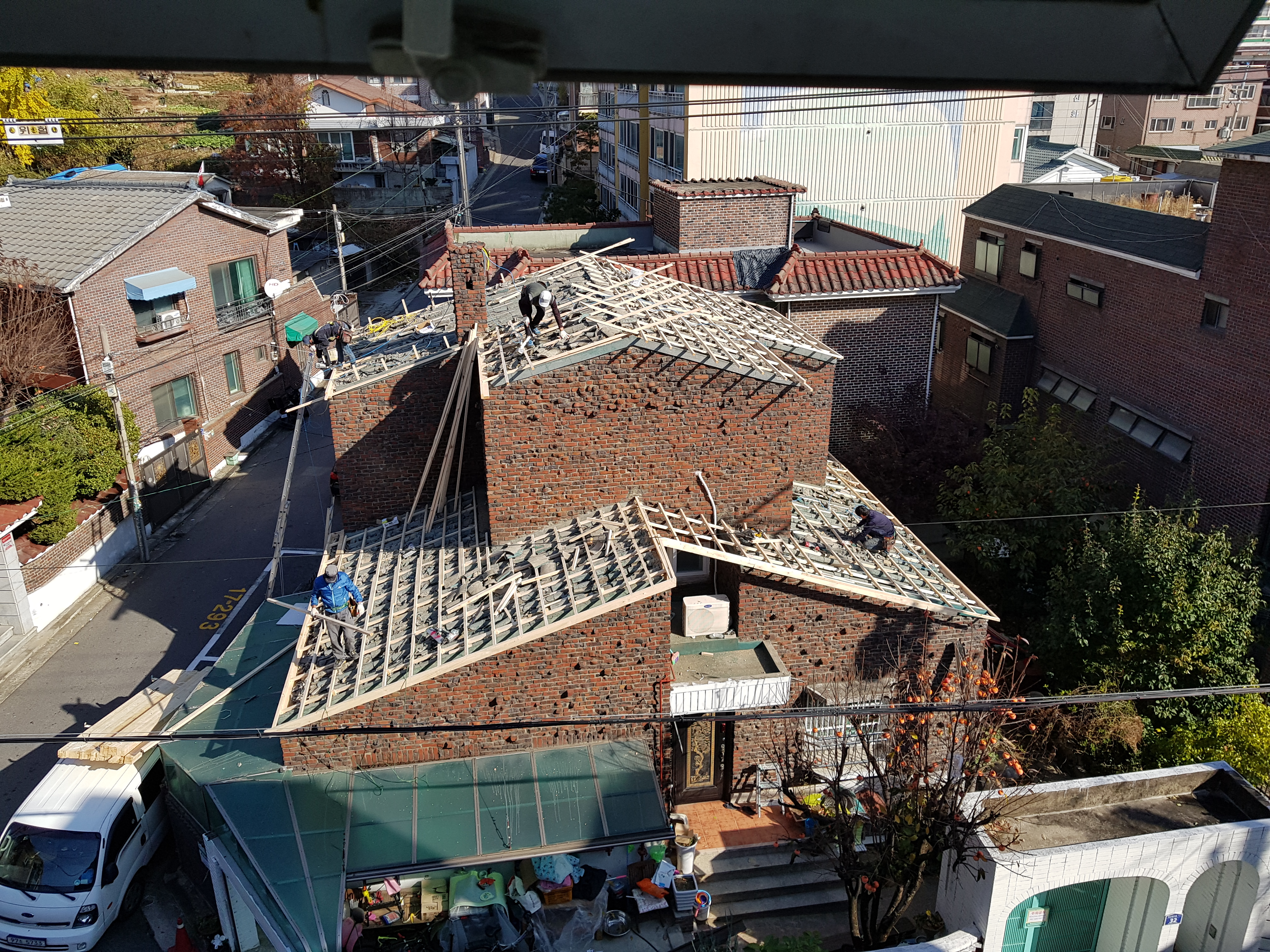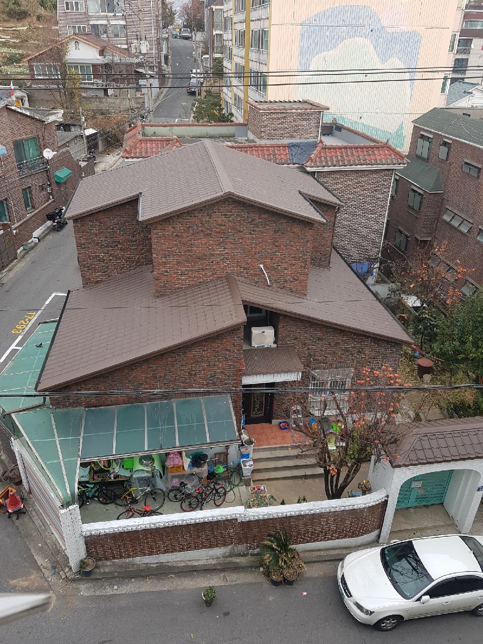 서울시 증산동 고야슬라브기와지붕의 누수로 굴뚝을 철거하고 처마부분을 늘려서 지붕개량