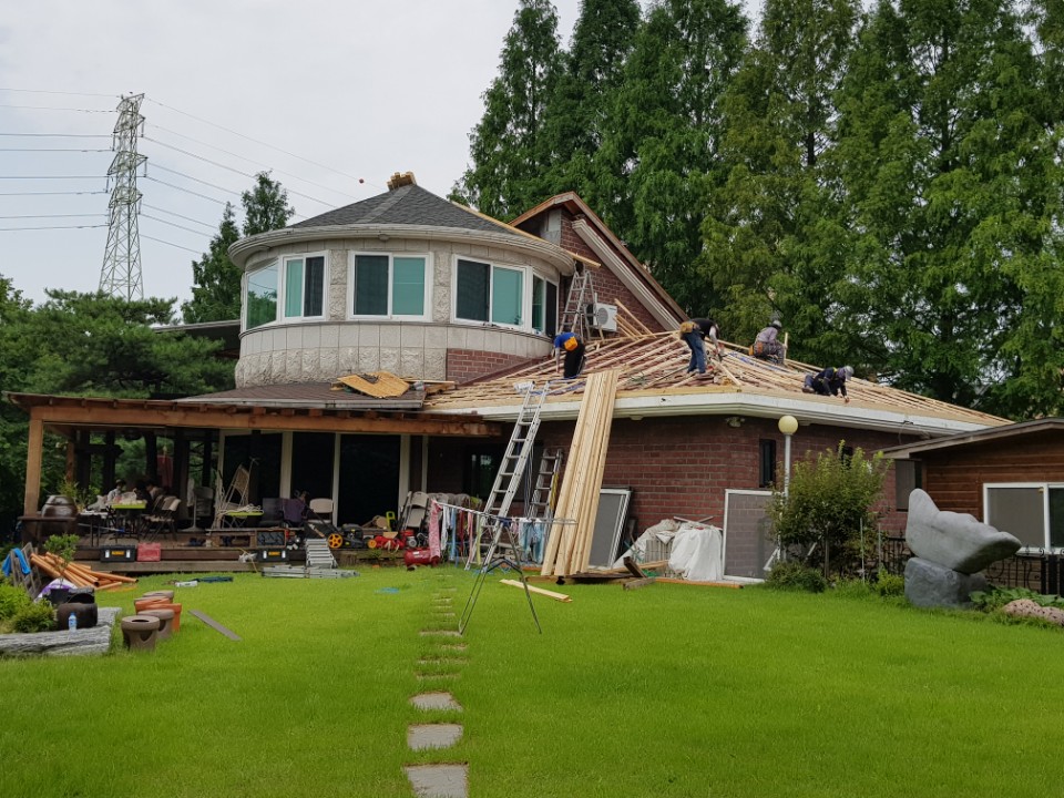 여주시 단현동 기존의 싱글과 기와지붕을 칼라강판으로 지붕개량
