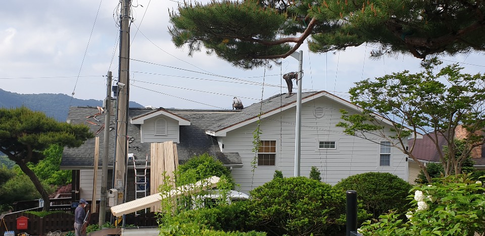 양평군 옥천면. 아스팔트싱글지붕을 칼라강판 평기와골 밤색스톤으로 개량공사.