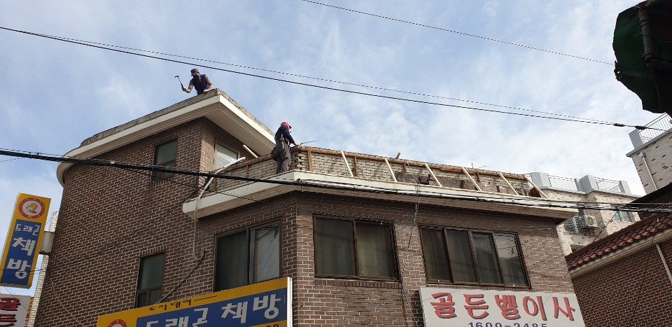 서울시 개봉동. 아스팔트싱글로 된 데스리를 칼라강판 평기와골로 개량공사.