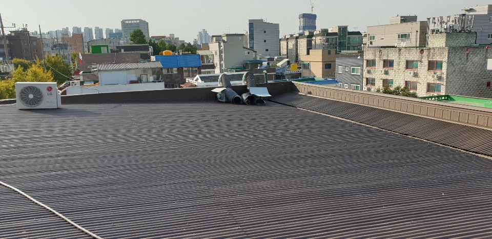 인천시 용현동. 슬라브지붕의 옥상을 사용하면서 단열과 방수에 탁월한 바닥시트형으로 시공함.