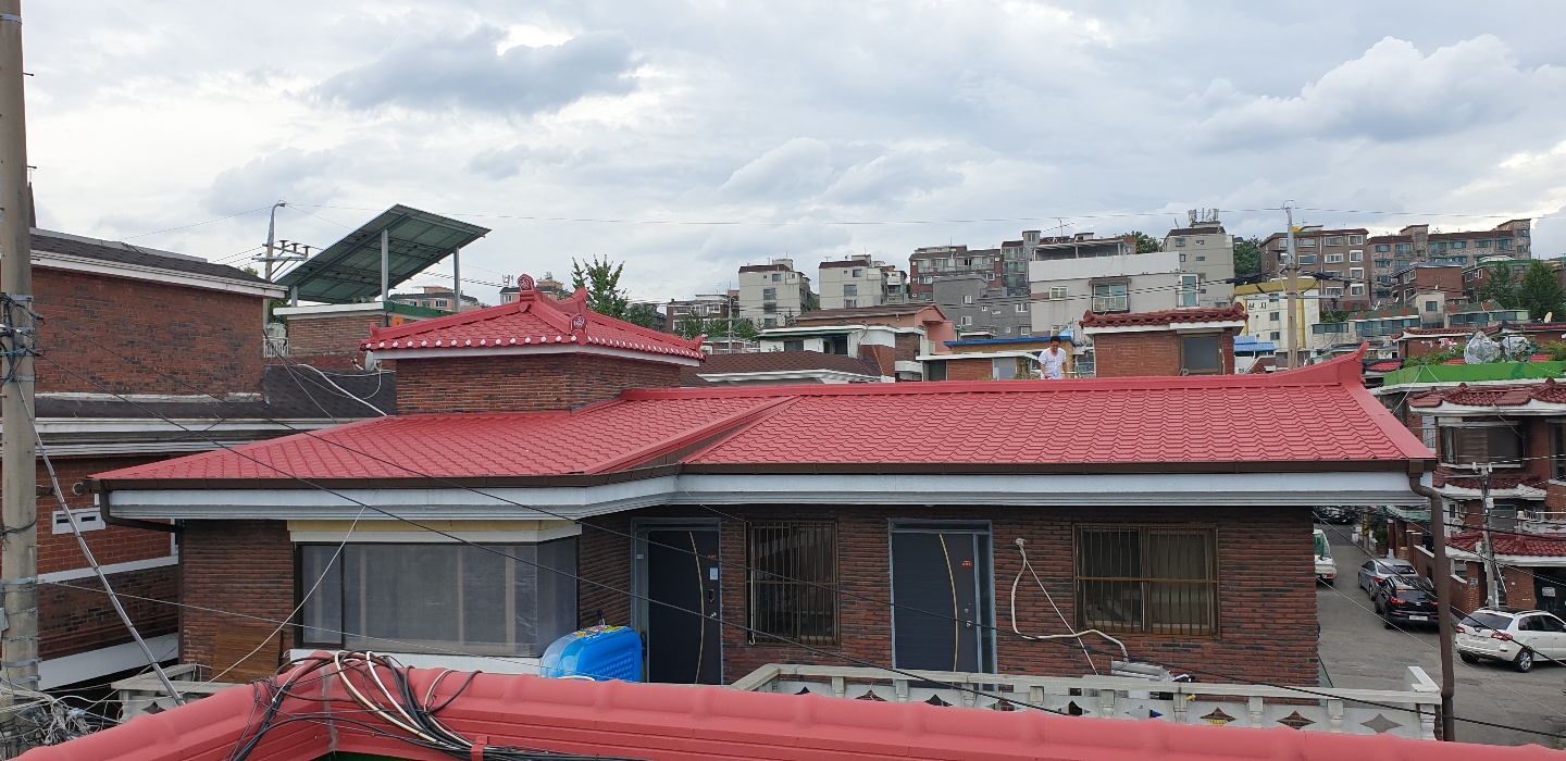 광명시 철산동. 기와지붕을 아연도칼라강판으로 시공함.