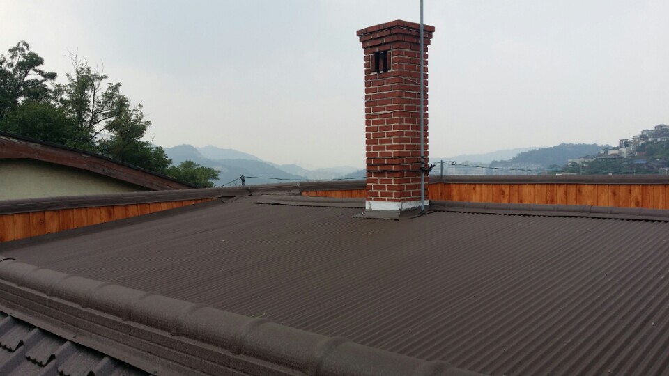 서울시 평창동의 슬라브 지붕을 옥상사용이 가능하도록 바닥 시트형으로 개량공사